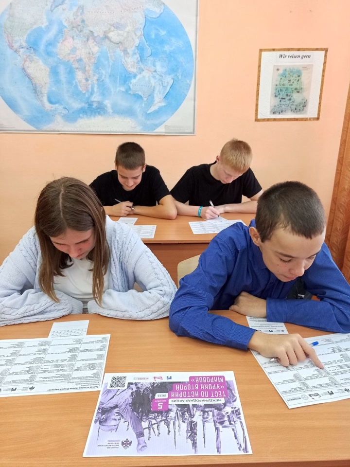 Ребята 8-9 классов , отвечали на вопросы теста посвящённого в этом году «урокам Второй мировой войны» охватив период с 1939 по 1945 гг.
