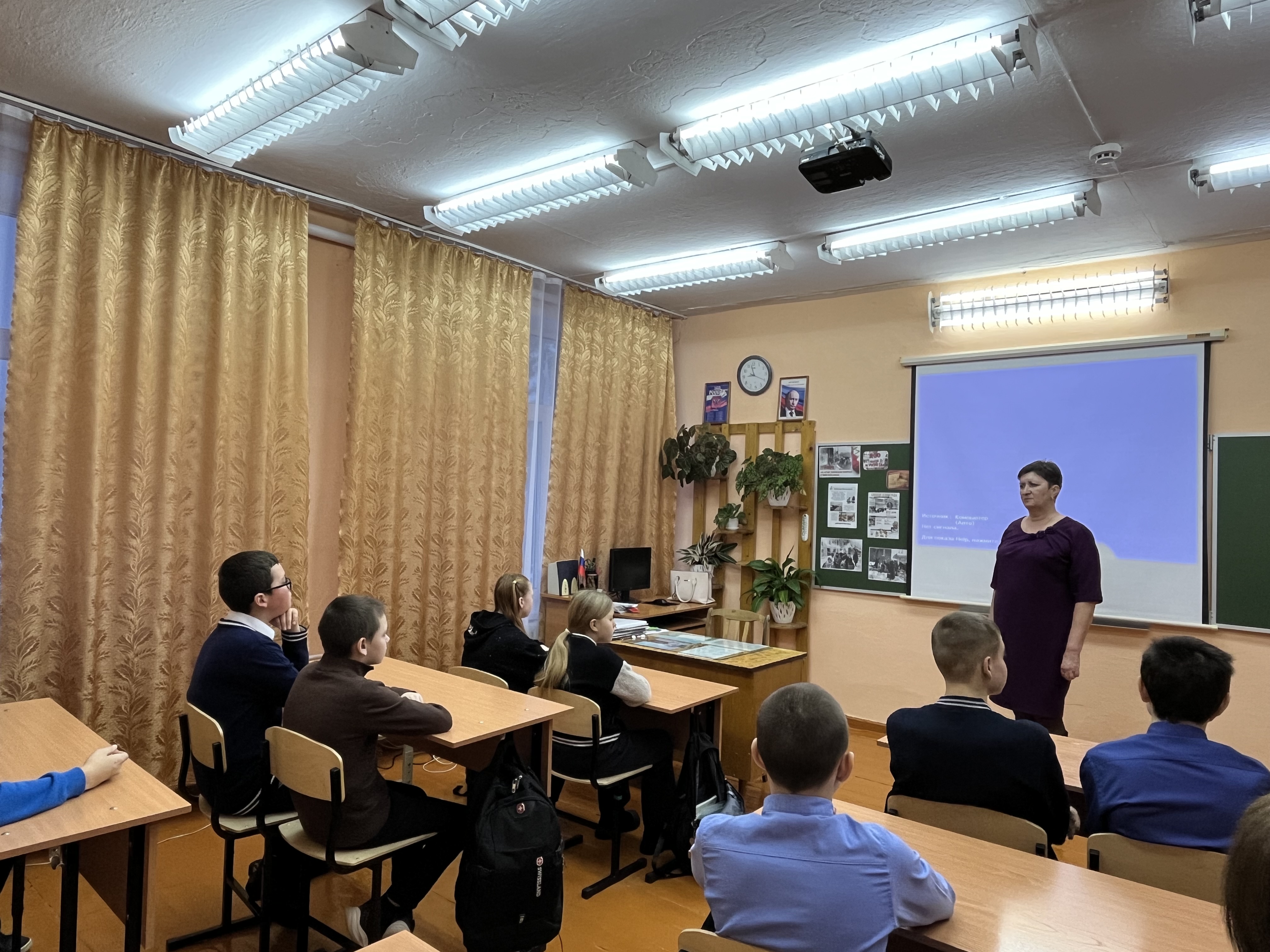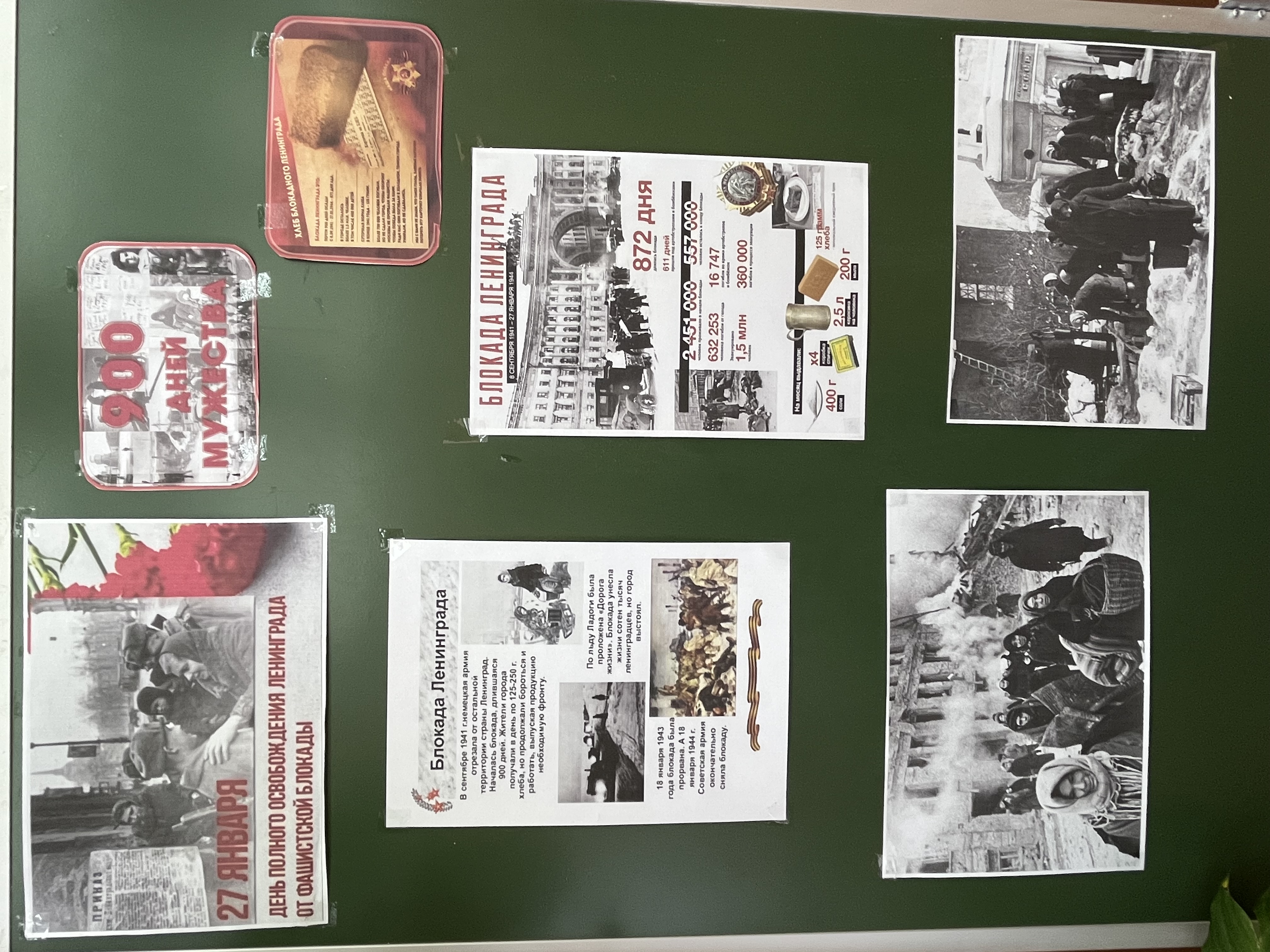28 января учитель истории Майдурова Т.П. для учащихся 5-9 классов рассказала историю 872‑дневной блокады (8 сентября 1941 г. — 27 января 1944 г.) как Ленинград, окружённый врагом и лишённый продовольствия, сумел выстоять, о том маленькие ленинградцы наравне со взрослыми сражались с голодом и холодом.