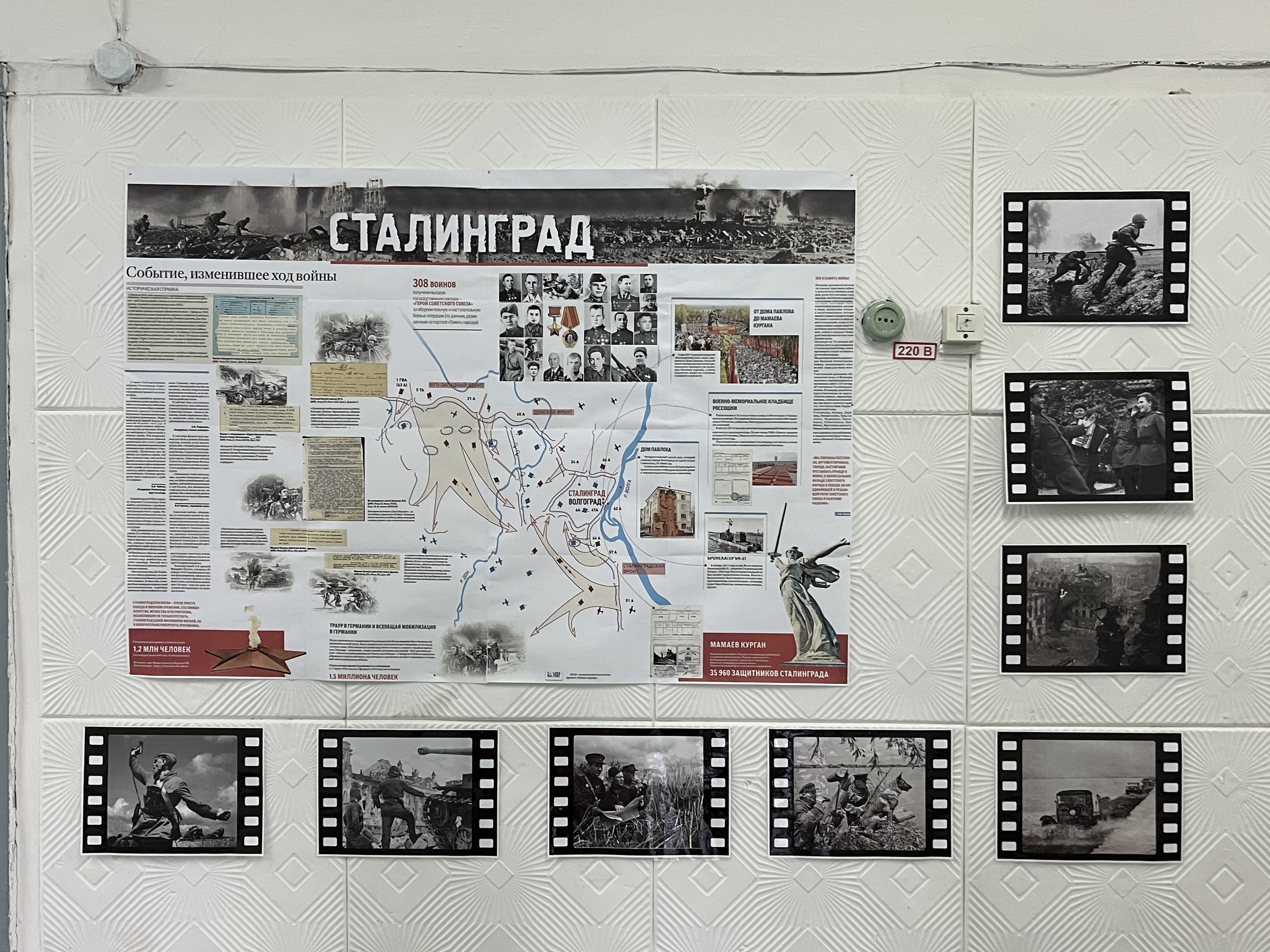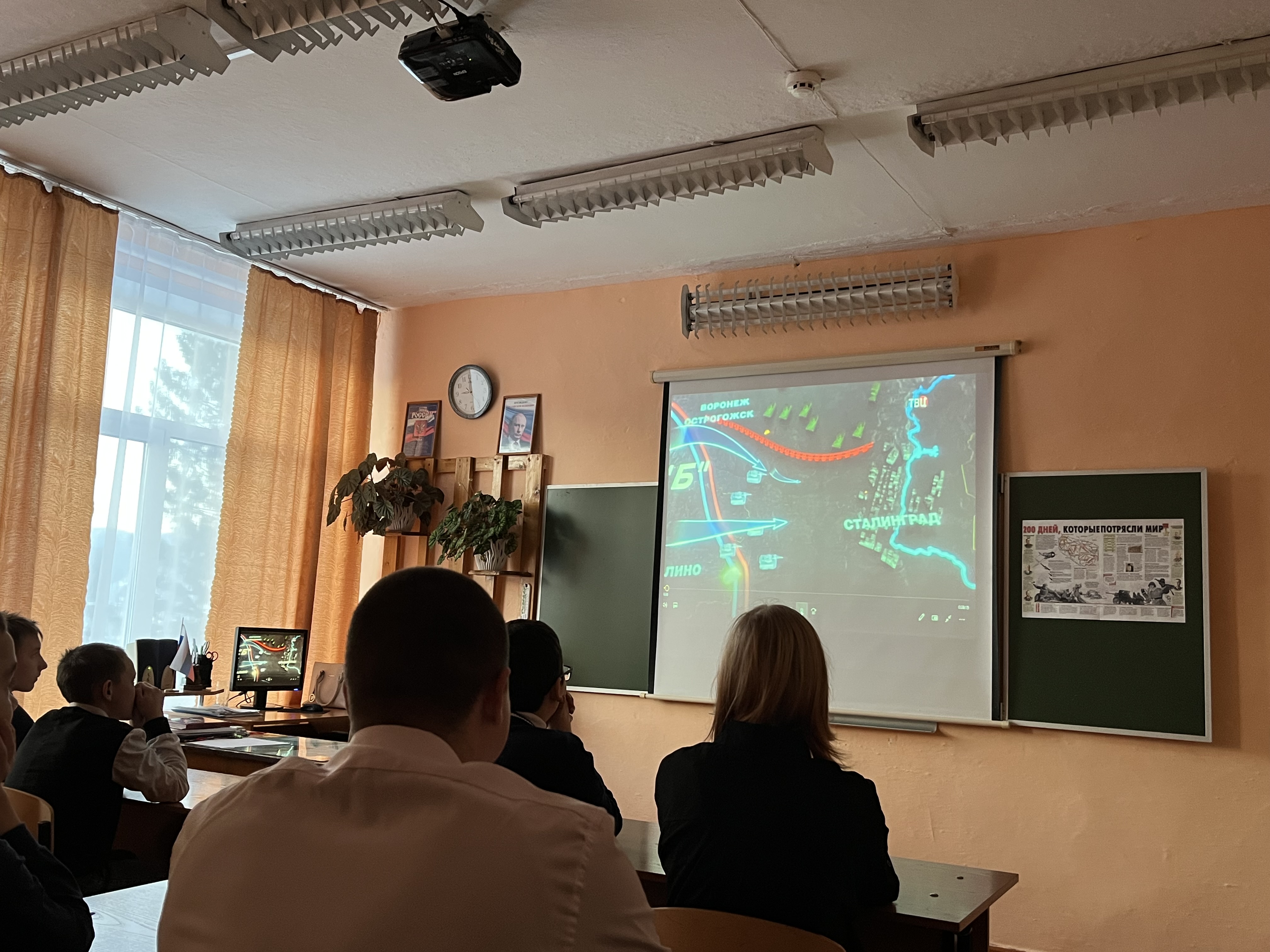 Ученики посмотрели документальный фильм "Сталинград: оборона". Ребята узнали о ходе сражения и о подвигах защитников города: о 58-дневной обороне четырёхэтажного «Дома Павлова» в центре города, о связисте 308-ой дивизии Матвее Путилове, о легендарном снайпере Василии Зайцеве, о моряке Михаиле Паникахе, который ценой своей жизни остановил немецкий танк, о командире отделения Николае Сердюкове, который закрыл собой амбразуру вражеского дота, о дважды Герое Советского Союза маршале Василии Чуйкове.